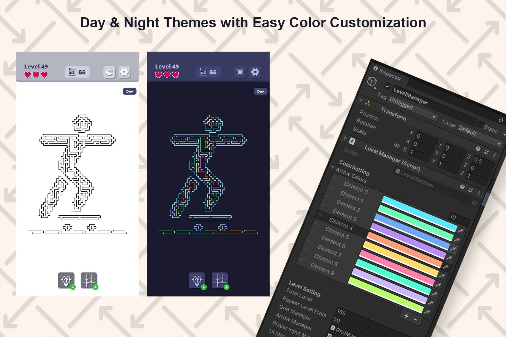 Arrow Escape is a complete and fully customizable mobile puzzle game template developed by The Vayuputra. It delivers a fully playable grid-based arrow escape puzzle experience where players solve levels by navigating through arrow-driven mechanics, using logic and planning to reach the correct exit path.