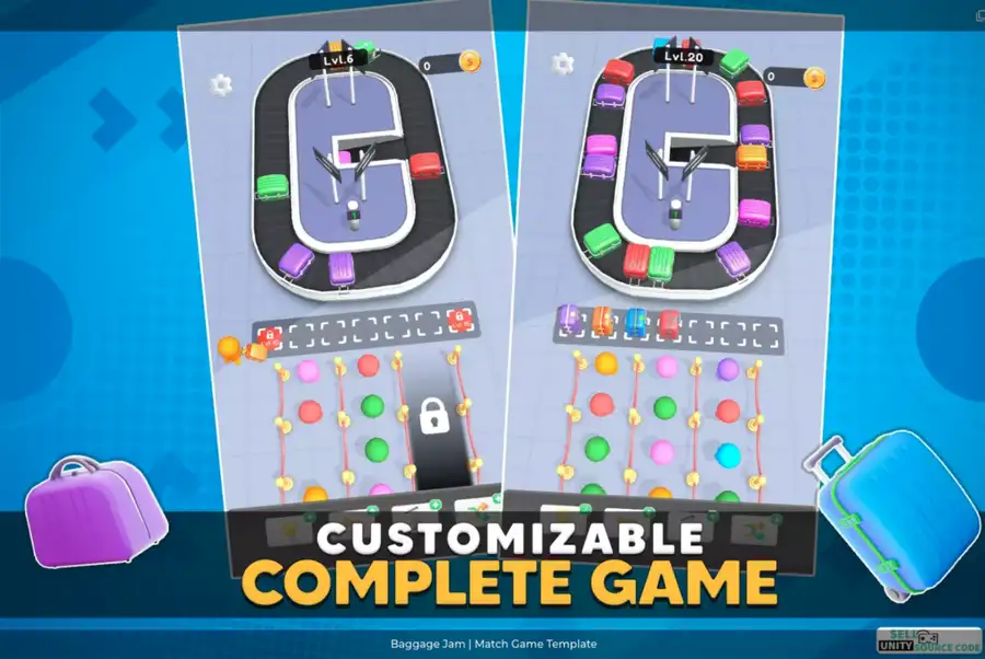 Join the fun, sort the chaos, and launch your own Baggage Jam game today — available now exclusively at SellUnitySourceCode.com.