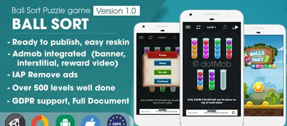 Ball Sort Puzzle is a highly addictive and satisfying color-sorting game built entirely in Unity — ready for developers who want to publish a polished mobile puzzle game quickly and effortlessly.