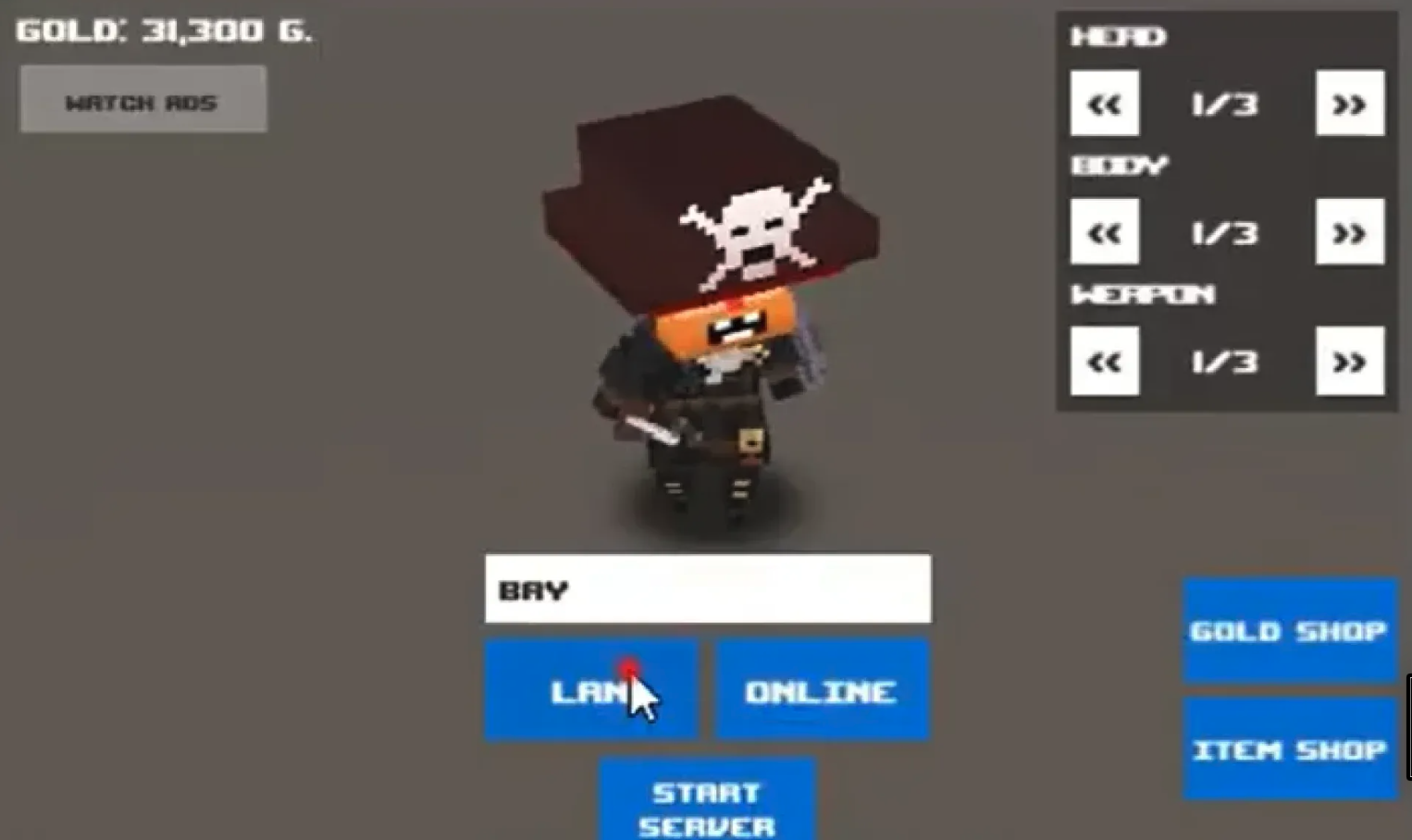 Character selection and weapon selection system