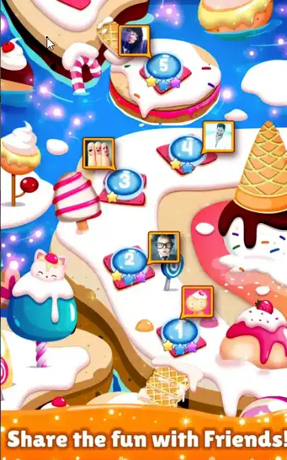 With over 750 sugar-packed levels, smooth animations, and eye-catching HD visuals, the game delivers a classic match-3 experience with modern polish. Players can earn powerful boosters by matching 4, 5, or more candies, overcome creative obstacles, and enjoy a steadily increasing difficulty curve that keeps gameplay exciting and rewarding.