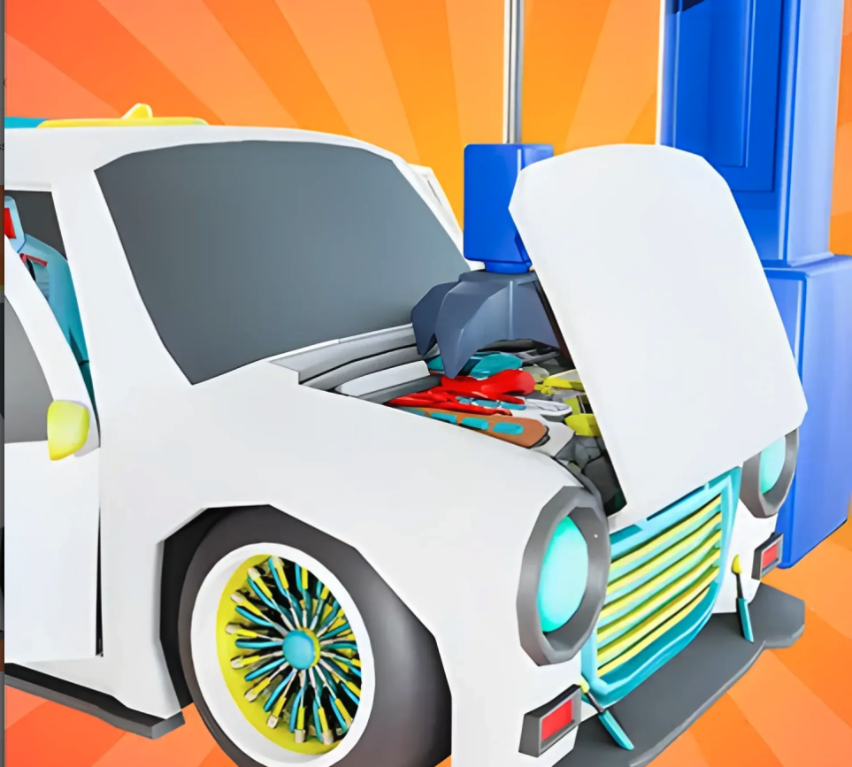 Players assemble a car by attaching missing parts in the correct order. Each completed part improves the car’s performance and appearance. After assembly, the car drives toward the finish line, giving players a clear sense of progress and achievement.