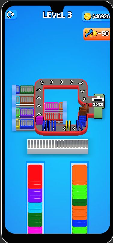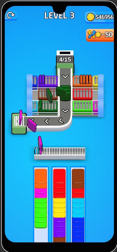 Card Factory Sort Puzzle 3D is a top trending hypercasual conveyor sorting game with unlimited randomly generated levels, smooth 3D animations, fortune wheel rewards, powerups, skip level feature, and full monetization support (AdMob + Unity Ads + IAP shop). Built with Unity 6 and optimized for Android/iOS with 64-bit IL2CPP AAB support.