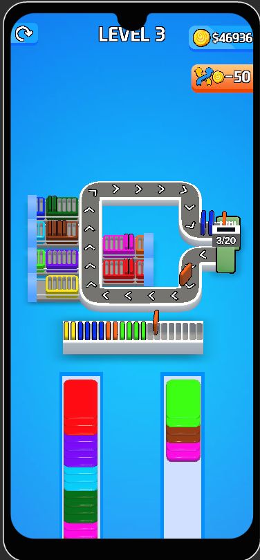 Card Factory Sort Puzzle 3D is a top trending hypercasual sorting game where players tap and send cards onto a moving conveyor belt to fill boxes and complete objectives. With unlimited randomly generated levels, smooth animations, and vibrant 3D visuals, this game delivers a satisfying factory-style puzzle experience that keeps players engaged for hours.