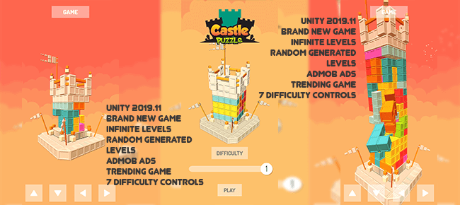 This highly addictive puzzle game challenges playersβ timing, logic, and precision. The gameplay is endless, featuring infinite randomly generated levels and progressive difficulty that keeps players engaged for hours. With its clean design, smooth mechanics, and visually appealing graphics, Castle Puzzle stands out as a perfect hyper-casual title for both Android and iOS markets.