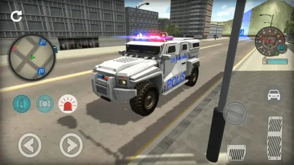 🚔 Real Police Cars: Choose from multiple high-quality police vehicles with working sirens and lights.