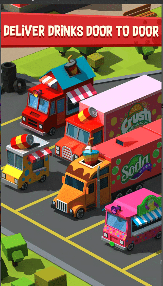 One of the core highlights is the multiple soda type production system, which adds variety and progression. As players expand their factory, they unlock more soda products and improve output efficiency. Delivery is handled through truck systems that automatically transport soda, fulfill demand, and increase revenue without manual work.