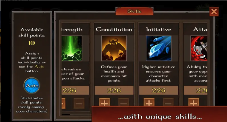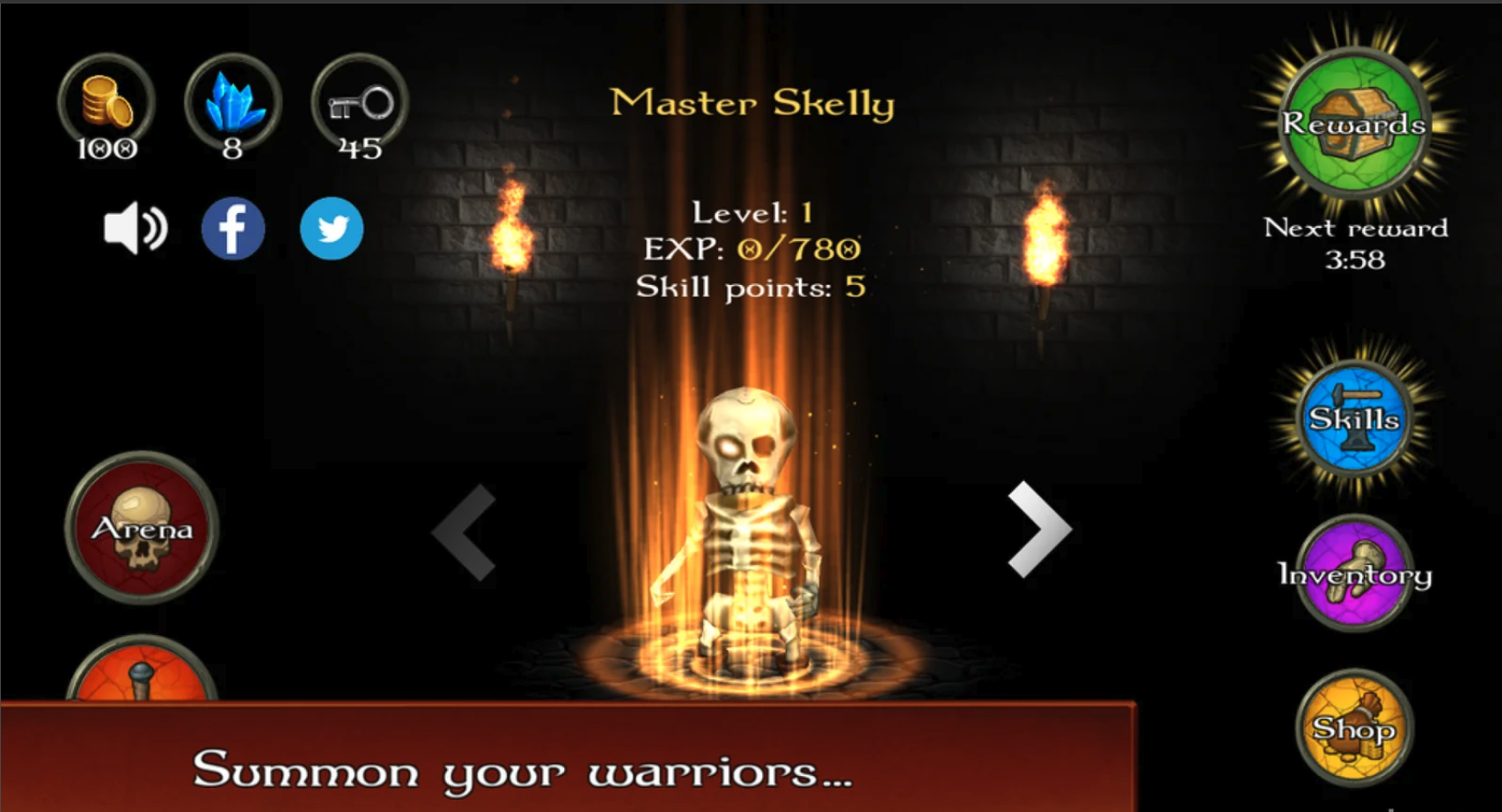 Clash of Skellies is a dungeon crawler strategy RPG where you summon heroes, upgrade skills and gear, explore dangerous dungeons, and battle players in PlayFab-powered arena fights to become the ultimate champion.