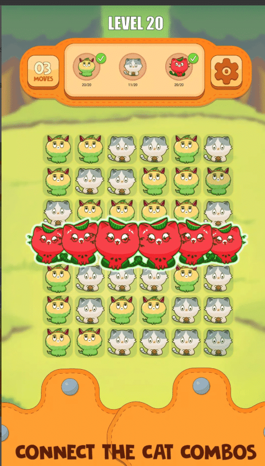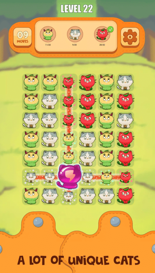 The core gameplay is based on connect-two matching mechanics, making it incredibly easy to learn while still offering rewarding progression. Players link matching cats, clear the board, and move forward through unlimited levels that slowly increase in complexity.