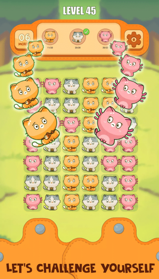 With charming visuals, cute cat characters, and smooth animations, the game creates a cozy atmosphere that’s perfect for casual play. There’s no time pressure, no complex rules, and no stress — just relaxing puzzle fun that anyone can enjoy.
