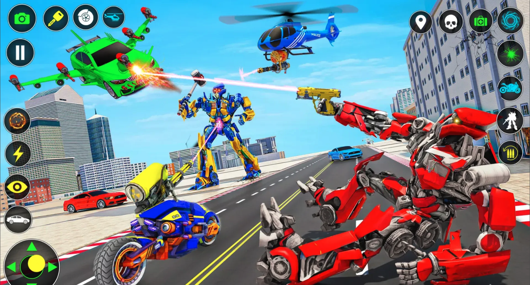 As you progress, unlock advanced weapons, stronger transformations, and tougher enemies that push your combat skills to the limit. Rescue civilians, destroy enemy bases, and dominate both aerial and ground battles in this fast-paced transformation war game.