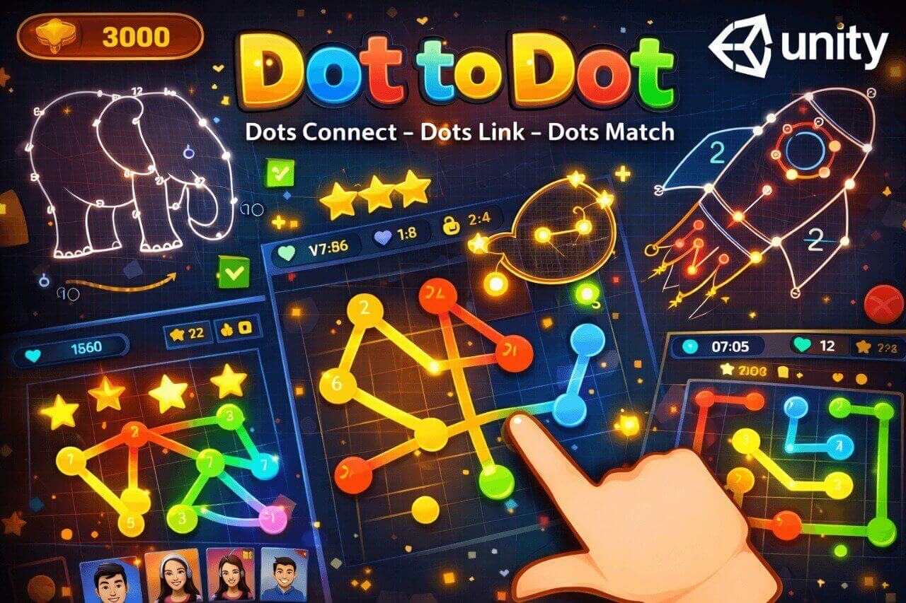 Dot to Dot: Dots Connect – Dots Link – Dots Match is a beautifully crafted puzzle game built with Unity that combines relaxing gameplay with satisfying strategic depth. Players connect dots of the same color to clear the board, trigger vibrant visual effects, and complete a wide range of engaging challenges. The game is designed to be easy to play while offering enough variety and progression to keep players engaged over time.