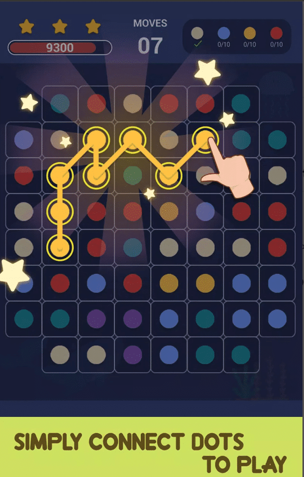 Dot to Dot includes full Unity project files with a clean, scalable, and mobile-optimized structure. The core mechanic revolves around connecting three or more dots of the same color to clear them from the board. When players connect six or more dots, powerful special dots are created, triggering satisfying chain reactions that clear large areas and dramatically boost scores.