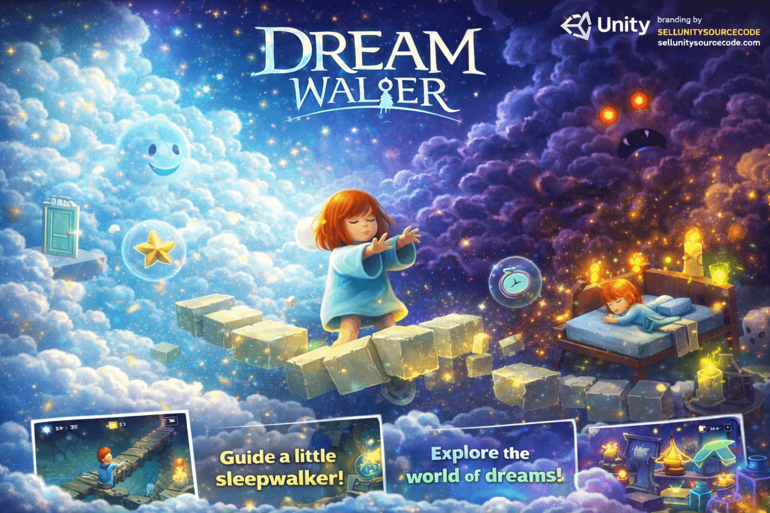 You can reskin dream environments, replace characters, add new chapters or mechanics, expand customization options, integrate monetization systems, or publish the game on Google Play or the App Store. The modular structure allows easy expansion into a larger dream-themed runner franchise or story-driven puzzle series.