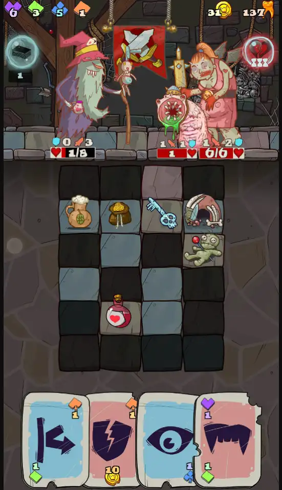 Venture into dangerous dungeons filled with treasures, deadly traps, and powerful monsters. Each run challenges you to think ahead, manage your deck wisely, and make smart tactical decisions. Build and upgrade your card deck permanently, unlock powerful abilities, and adapt your strategy to survive increasingly difficult encounters.