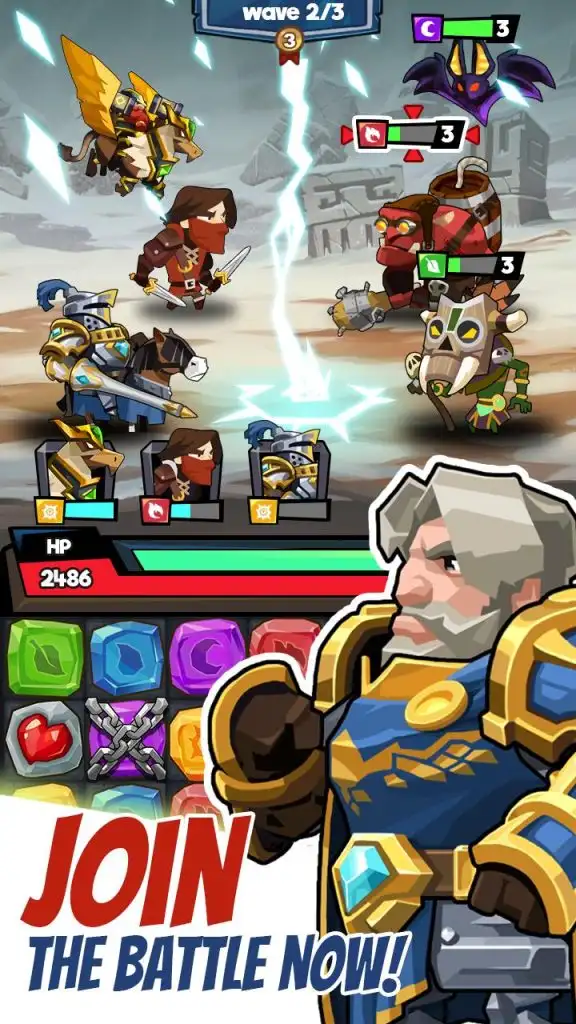 The once-peaceful kingdom has fallen into chaos — dragons and dark enemies have seized its fertile lands. As the commander, your mission is to recruit brave mercenaries, build your dream team, and fight back using match-3 combos that trigger devastating attacks.