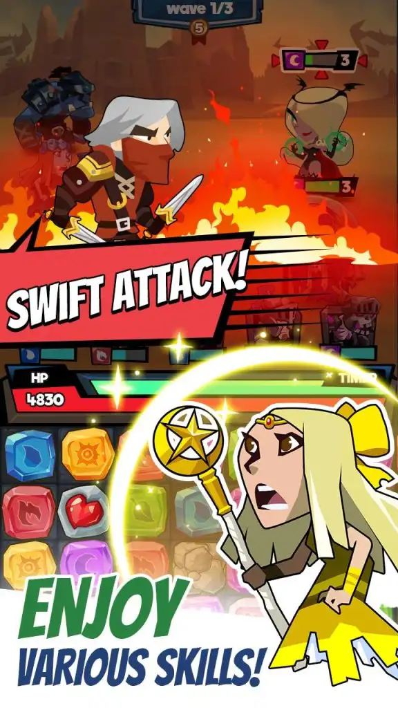 Experience a unique fusion of puzzle-solving and RPG combat, where every move and match unleashes powerful attacks, combos, and ultimate abilities!