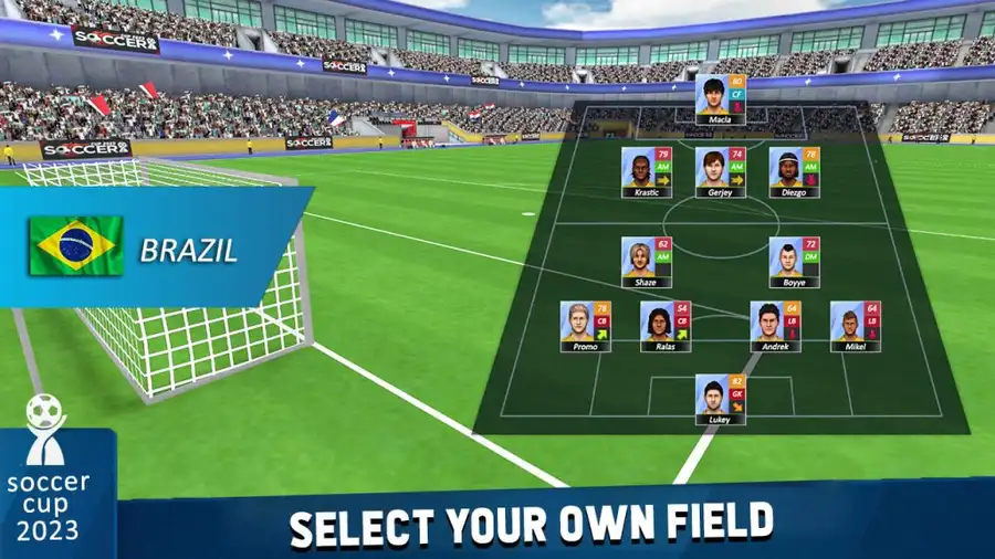 Choose from real-world football teams, country flags, and uniform kits to personalize your gameplay.