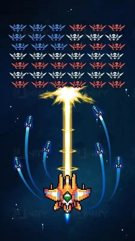 Galaxiga – Galactic Attack is a classic free-space arcade shooter reborn with a fresh futuristic setting. This exciting infinity space shooter puts you in the middle of galactic wars filled with evil alien enemies, powerful striker bosses, and non-stop bullet-hell action. Your mission is simple yet intense: control the lone spaceship, upgrade it to its fullest lethal potential, and protect Earth from alien swarms.