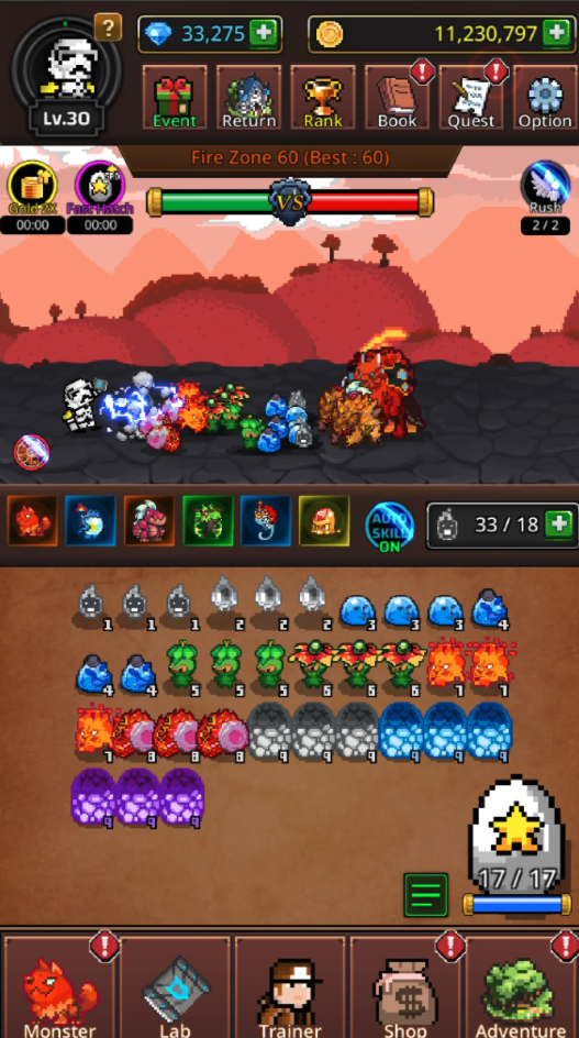 Collect stylish trainer skins to customize your character and stand out as a true master. With idle gameplay mechanics, your monsters continue progressing even while you’re away, making it perfect for both active players and idle RPG fans.
