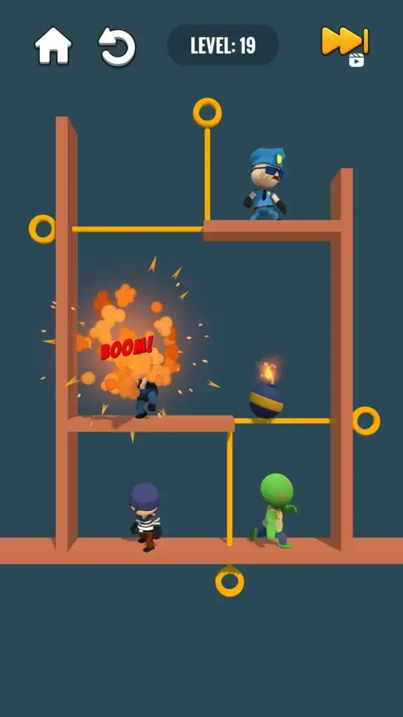 Players face tricky situations, dangerous obstacles, and clever traps set by the criminal. Each level becomes more challenging, offering diverse puzzles that keep players engaged. With a full skin shop, complete AdMob integration, and clean Unity structure, this game is ideal for developers seeking a polished puzzle experience.