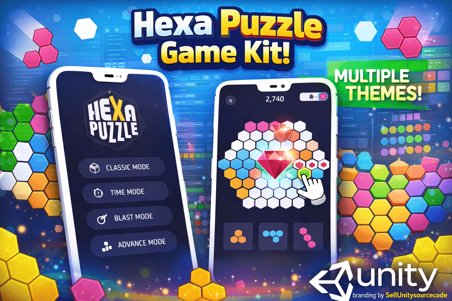 Hexa Puzzle Game Kit is a powerful and fully dynamic hex puzzle template that lets you create a complete, professional-quality puzzle game with zero coding experience. Whether you’re a beginner or an advanced Unity developer, this asset makes building, customizing, and publishing a puzzle game incredibly simple.