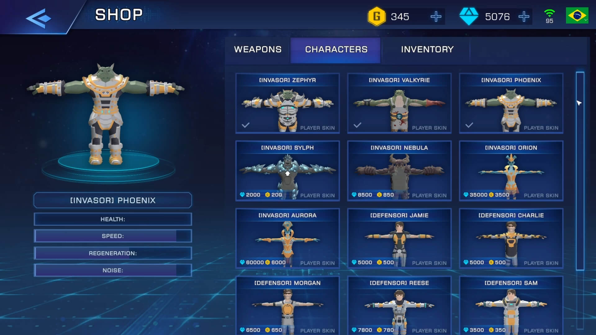 • Store system with two virtual currencies, offering a wide range of options for player profile customization, such as weapons, characters, emblems and flags.