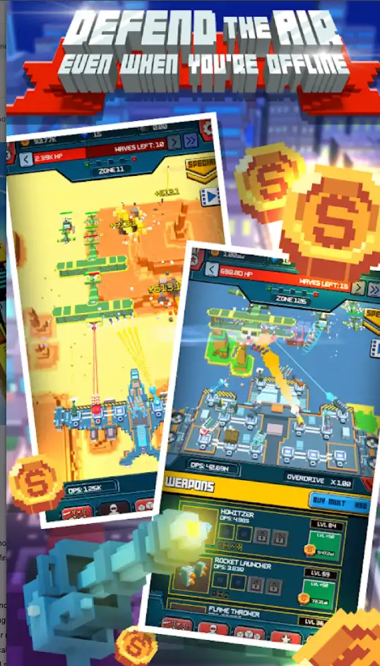 Idle Defender: Tap Shooter is a retro idle shooter where players command a helicarrier, tap or auto-fire at enemy waves, upgrade weapons, rescue prisoners, and dominate the skies through strategic progression.