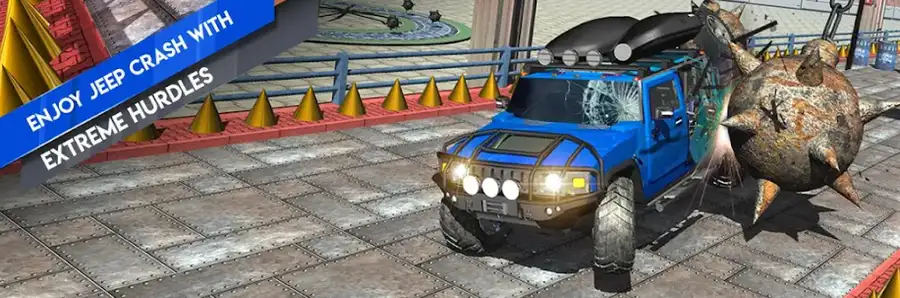 Switch from smooth off-road driving to full-power destructive crashing as you race through mountains, safari zones, dangerous highways, and impossible stunt tracks. Complete intense crash missions to unlock faster jeeps, brutal crash zones, and new destruction challenges!