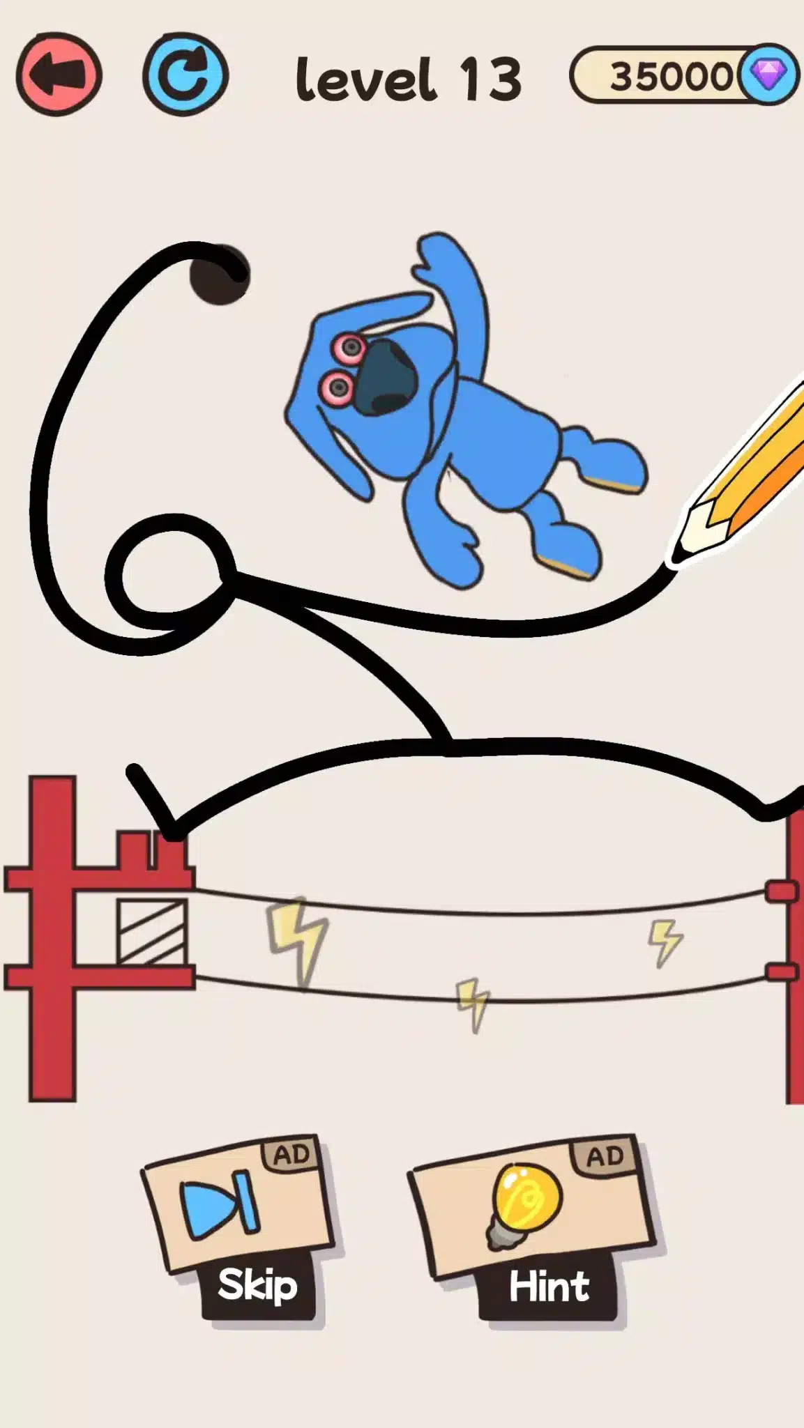 Draw-one-line rescue puzzle gameplay