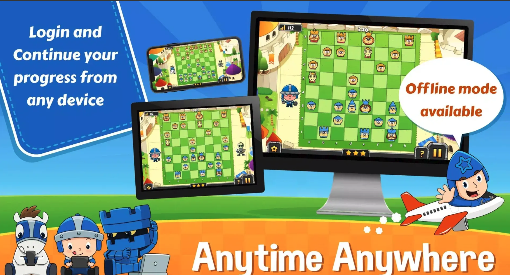 With over 2,000 mini-games and puzzles, kids can practice moves, improve problem-solving skills, and earn points to unlock progress and rankings. The built-in chess engine allows both simplified learning modes and full chess games for deeper mastery.