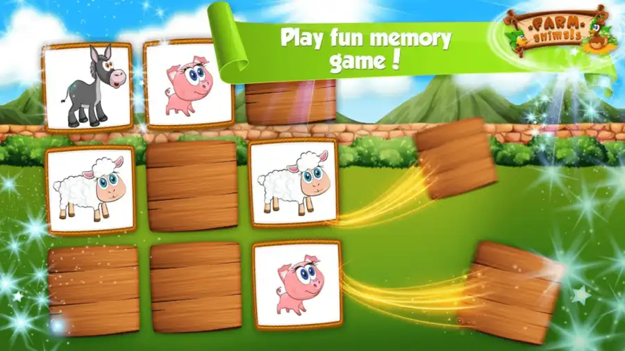 This interactive kids-learning game features enjoyable mini-games that help children identify different domestic animals, discover sounds they make, and explore a positive farm environment full of learning and fun.