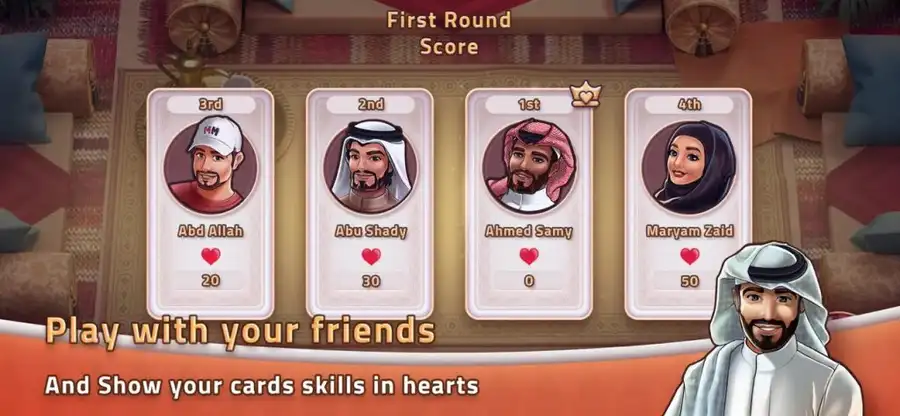 aapko Arabian culture se inspired ek immersive virtual world me le jaata hai! Yahaan aap worldwide players ke saath classic Hearts card game khel sakte ho — aur jeete hue coins se apni Majlis ko customize kar sakte ho.
