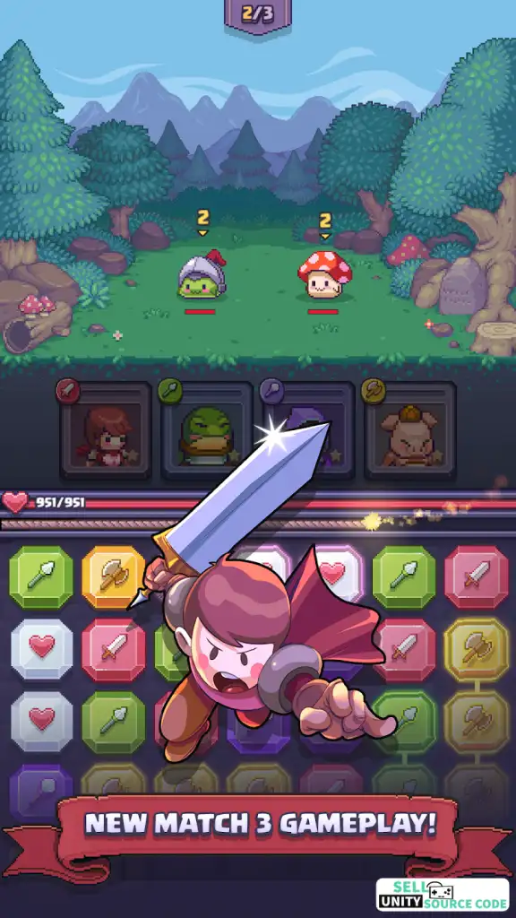 • NEW action/turn-based match 3 puzzle RPG gameplay!
