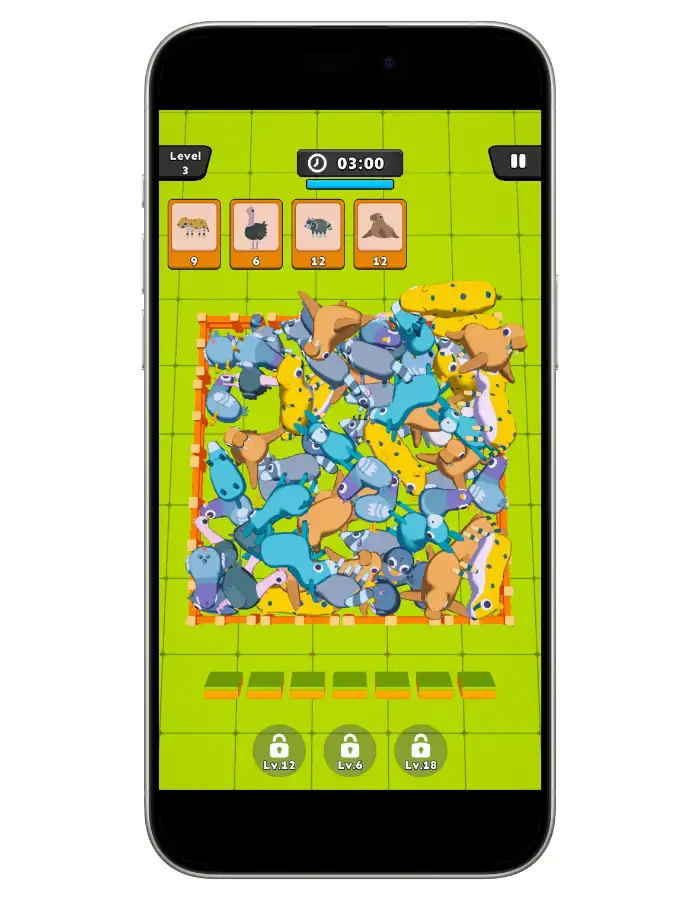 A Unity Match 3D puzzle game featuring cute animal objects, easy level generation, built-in monetization, and clean scalable architecture—ready to publish.