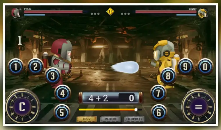 Each correct answer delivers a powerful hit and reduces the opponent’s health, while slow or incorrect answers leave players vulnerable to counterattacks. As the game progresses, difficulty increases with tougher opponents and faster calculations, keeping both reflexes and math skills sharp.