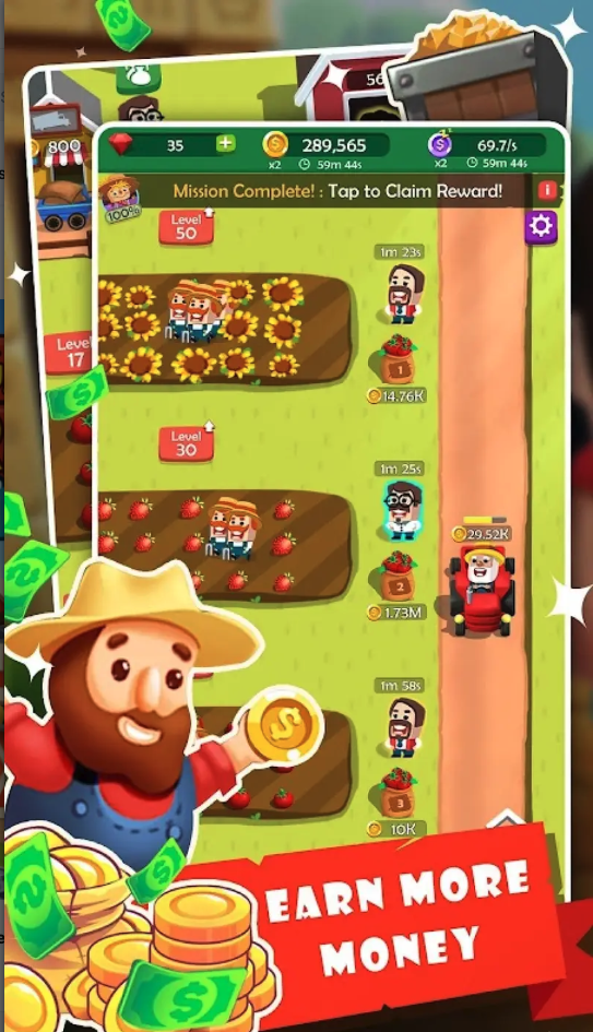 For active play sessions, players can also tap to speed up harvesting, increasing profits and keeping gameplay engaging. As the business expands, new production areas and farmland zones can be unlocked, giving players motivation to keep upgrading and investing.