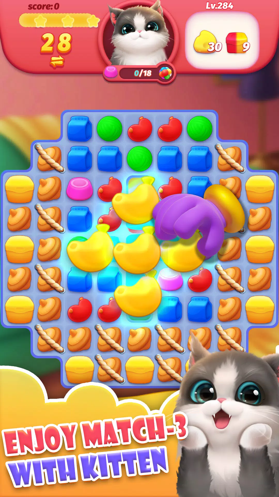 – Super cute cat Chris, high-quality match3 effects and rich characters & plot performance!