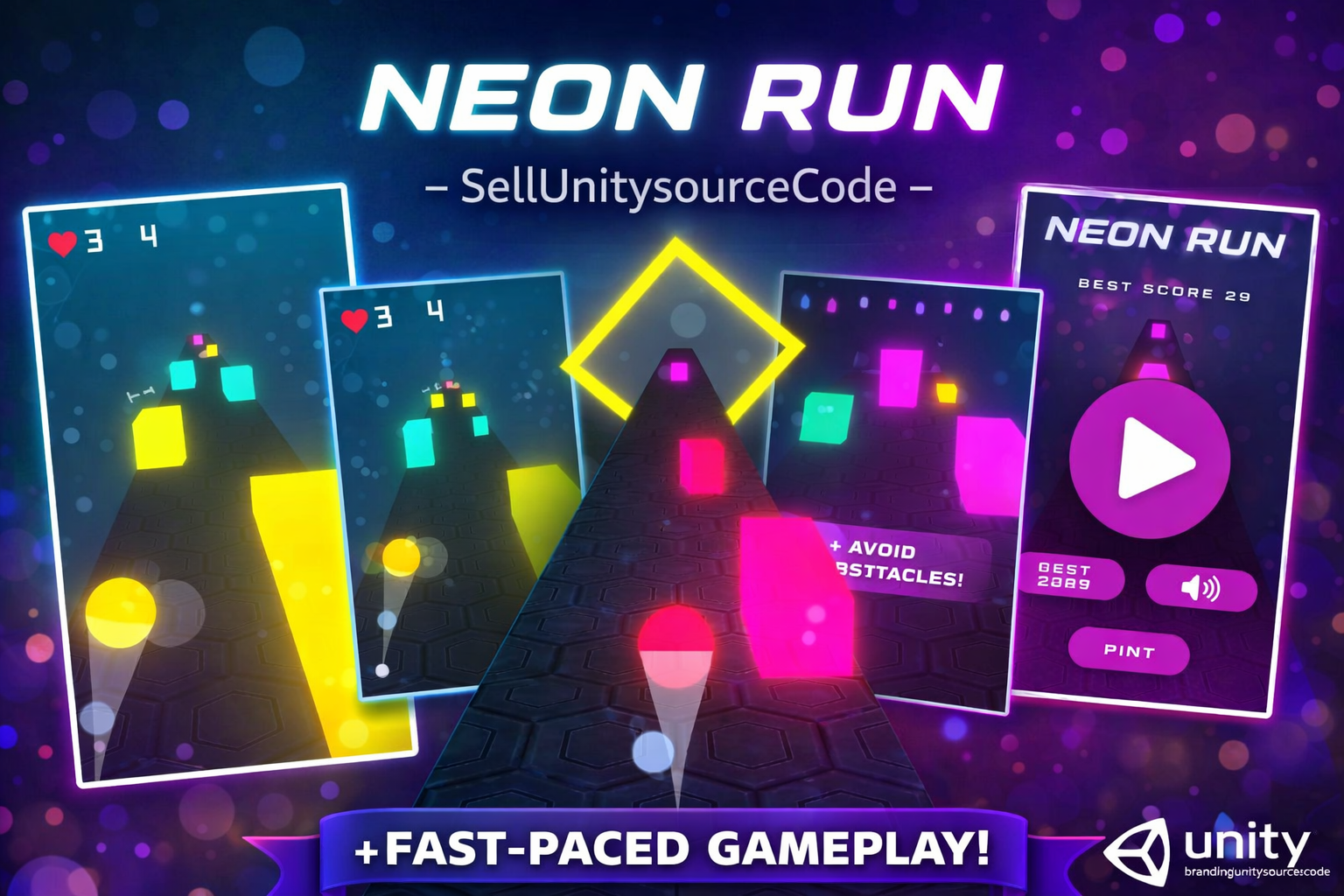 Neon Run is an exciting lane-switching game where you think quickly and swipe to avoid obstacles. This game is easy to reskin and customize, making it perfect for developers looking for a simple yet fun project.