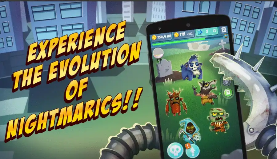 Nightmare Evolution: Undead Idle Clicker is a dark and addictive idle evolution game where players merge, upgrade, and discover terrifying undead creatures. From zombies and vampires to soul reapers and werewolves, players take control of a haunted vampire castle and guide the evolution of bizarre undead species.