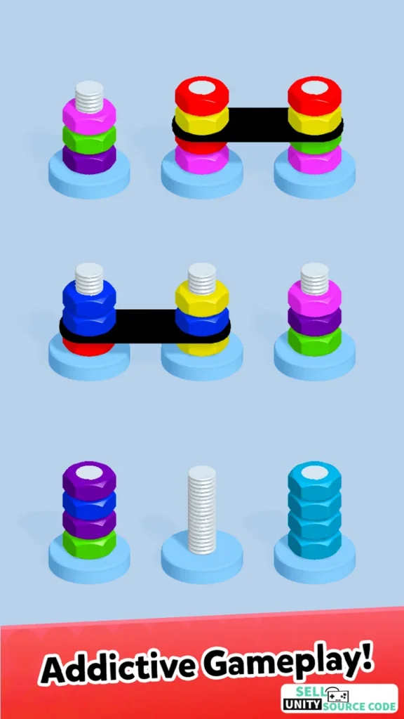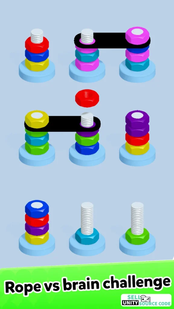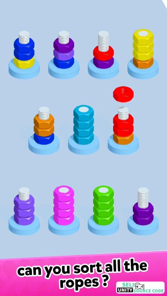 🔩 Nuts Bolts Sort – Brain Trainer Color Sorting Puzzle (SellUnitySourceCode)