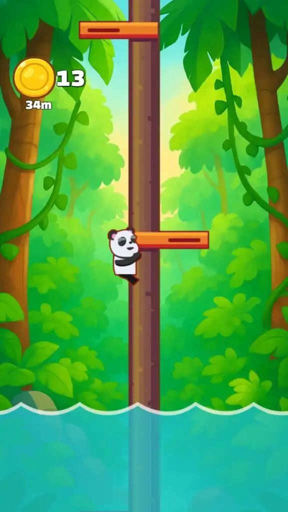 Control a cute panda in an endless vertical climbing challenge