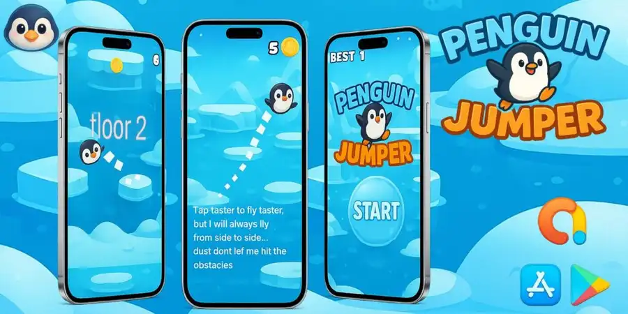 Penguin Jumper is a fully developed 2D endless casual Unity game, designed for fast publishing on Google Play (Android), App Store (iOS), and WebGL. Players control an adorable penguin, jumping endlessly while avoiding obstacles and aiming for high scores in a fun, lightweight arcade experience.