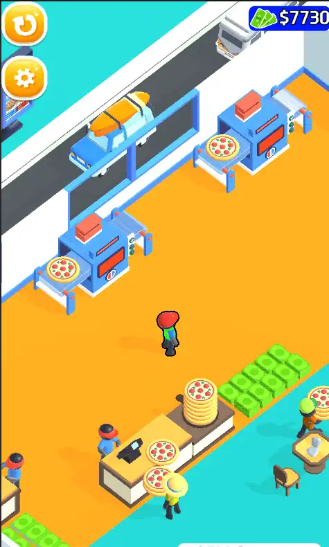 Players take the role of a restaurant owner — preparing pizzas, serving customers, hiring staff, unlocking machines, and expanding the business step-by-step. The more upgrades they unlock, the faster the revenue rolls in!