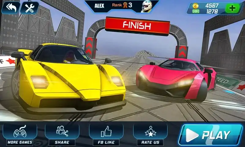 Ramp Car Gear Racing 3D challenges players to drive high-speed GT cars on insane vertical mega ramps, performing sky-high stunts and defying gravity like a real stunt master!