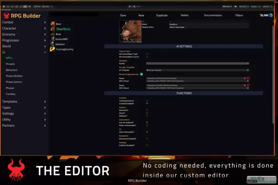 RPG Builder ka main goal hai developers, beginners aur studios ko ek aisa ecosystem dena jisse woh bina coding ke ek high-quality RPG build kar sakte hain. Iske editor tools itne advanced aur simple hain ki ek fully functional RPG—combat, inventory, abilities, AI, quests, levels, crafting, loot system, UI, scenes—sab kuch drag-and-configure se ban jata hai.