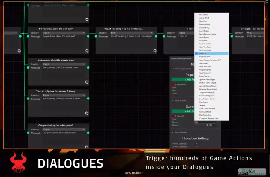 Aap game ke andar hazaaro stat combinations, conditional effects, talent trees, ability animation sets, weapon templates, shapeshifting, dashing, rolling, stealth, pets, summoning, elemental systems, loot rarity, merchants, crafting, socketing & enchanting — sab kuch bina ek line code likhe bana sakte hain.