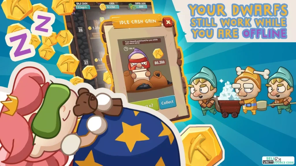 Dig deeper, earn faster, and build the richest mining empire ever in Seven Idle Dwarfs, a charming fairy-tale idle mining simulator built with Unity 2022. Step into a magical world where hardworking dwarfs mine day and night to grow your fortune—whether you’re online or completely offline.