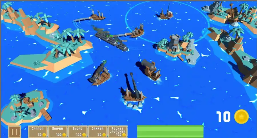Built in Unity 2020–2022, this project delivers four exciting levels, each featuring different layouts, enemy types, and powerful pirate-style weapons. With immersive ocean visuals, smooth ship controls, and atmospheric pirate music, Ship Tower Defense 3D provides a complete and polished gameplay experience.