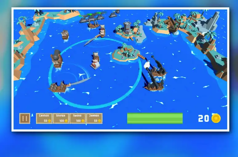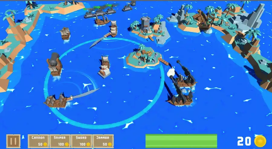 ⚓ Unique mobile towers: Control pirate-ship towers that move and reposition during battle